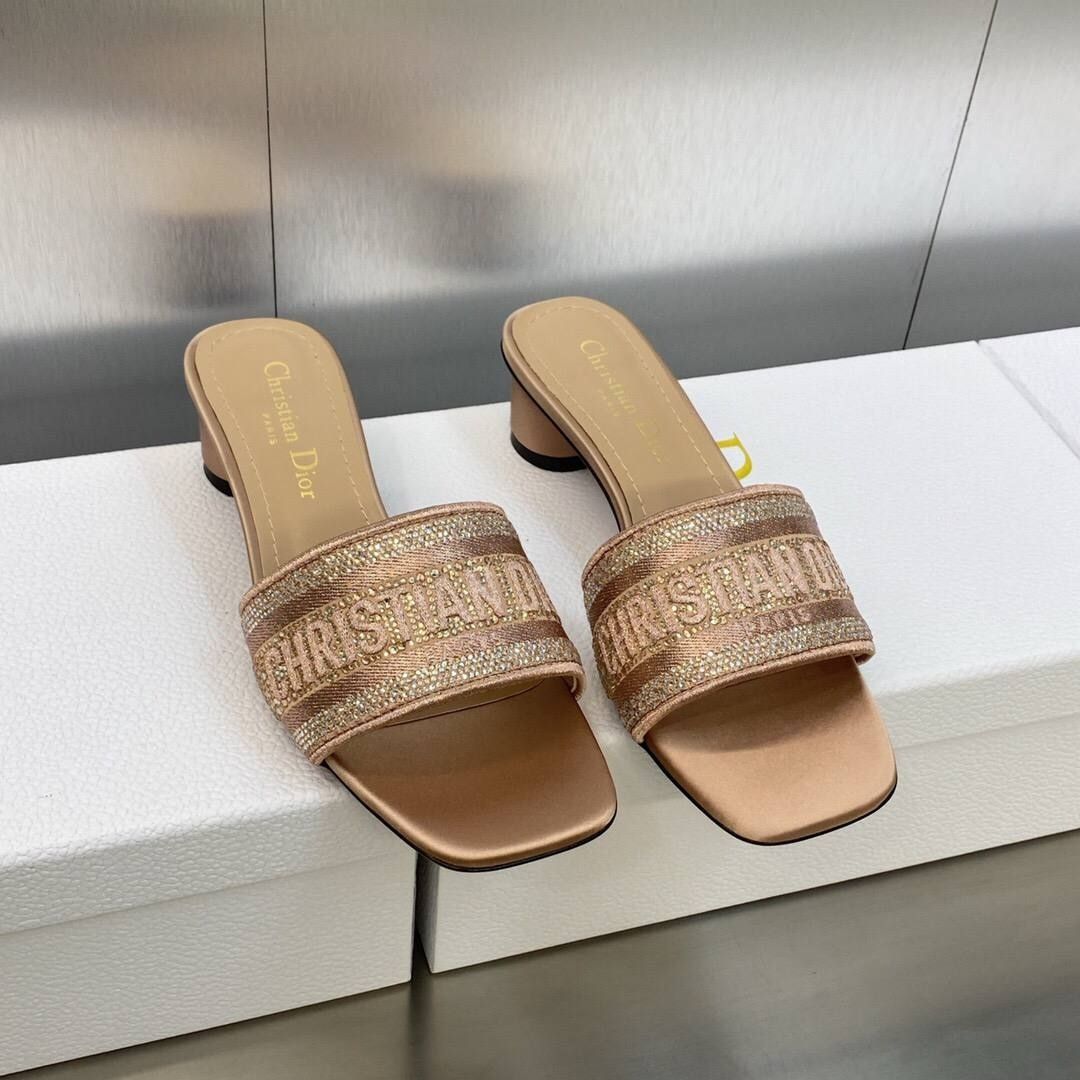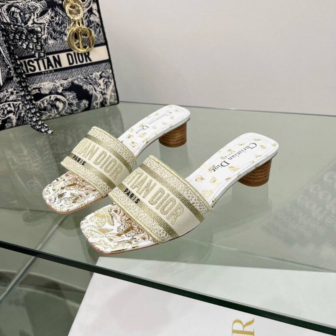 Mules Dior Dway color oro/marrone con tacco 3,5 cm