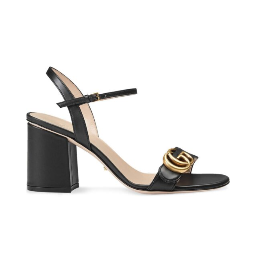 Sandali Gucci Marmont in pelle nera con tacco 7,5 cm