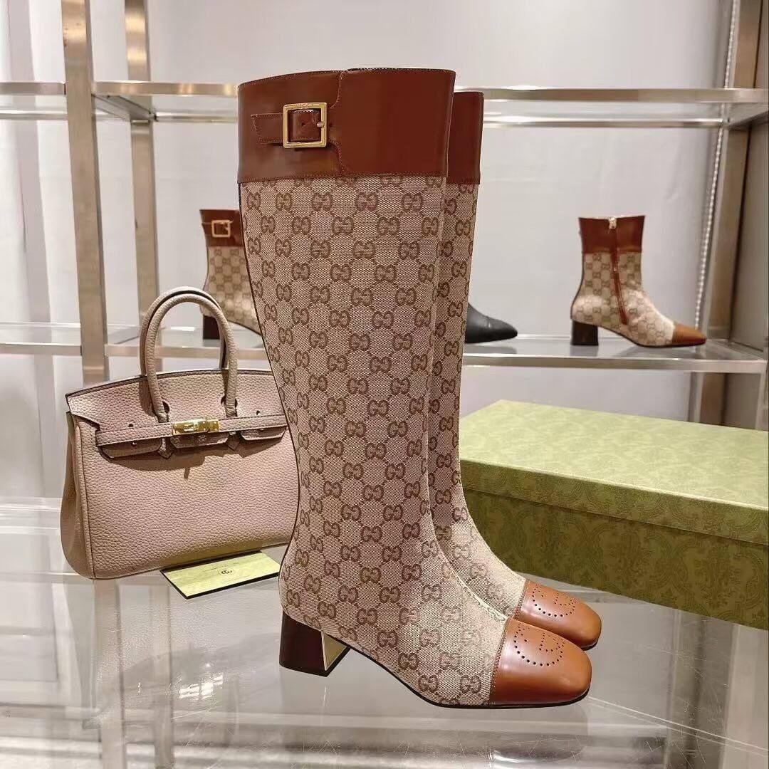 Stivali al ginocchio Gucci Ellis in canvas GG con tacco 4,7 cm