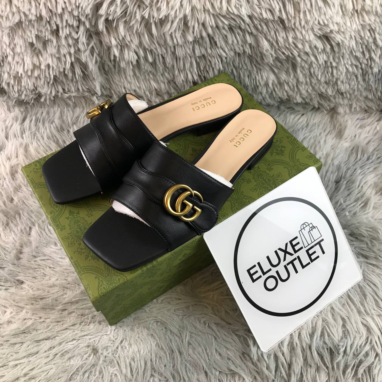 Dettagli:● Materiale: Pelle liscia● Colore: Nero● Chiusura: Slip-on● Logo: Doppia G dorata sulla fascia frontale● Suola: In cuoio● Interno: Fodera