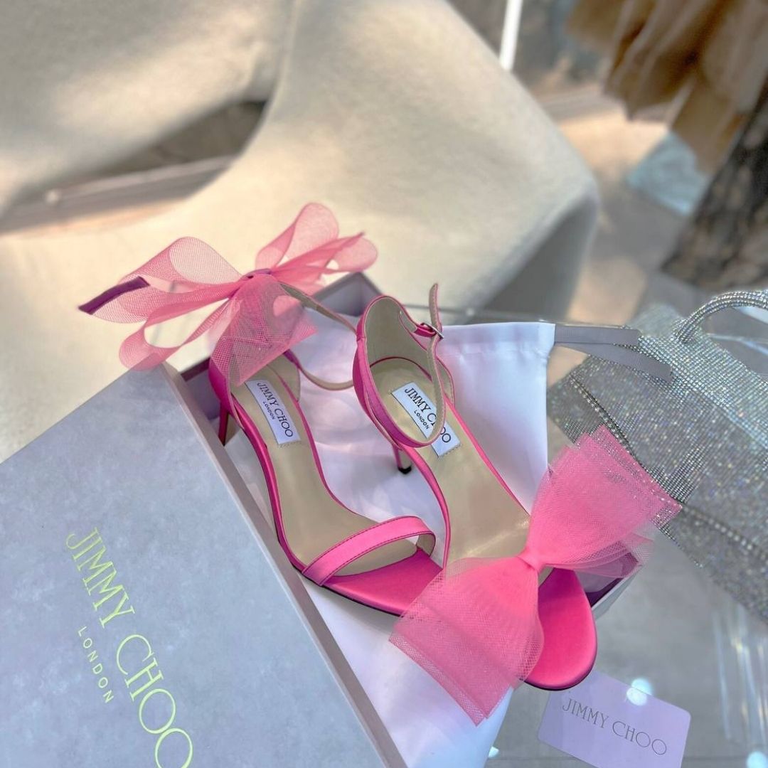 Dettagli:● Materiale: Raso di seta● Colore: Rosa acceso● Chiusura: Cinturino alla caviglia con dettaglio gioiello● Logo: Incisione interna Jimmy Choo●