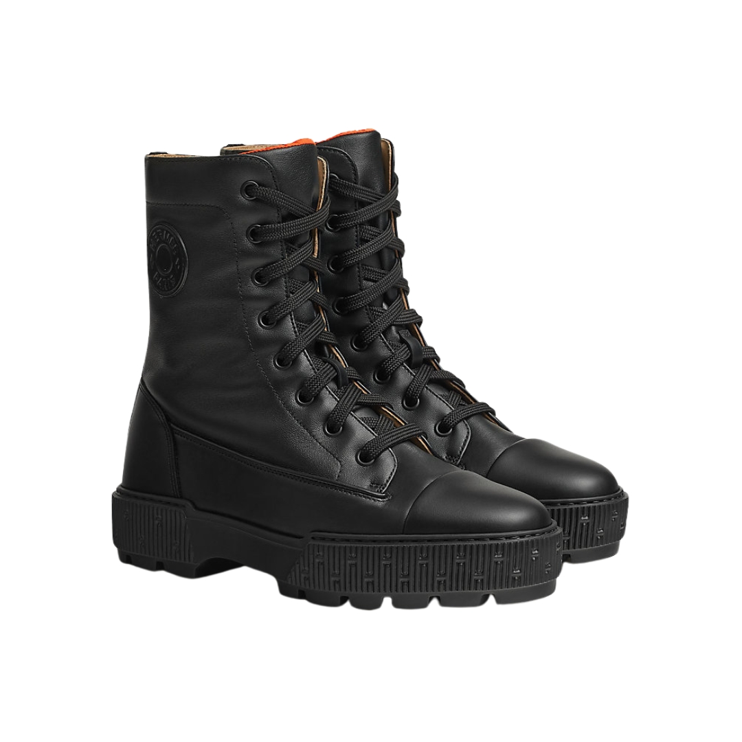 Mocassini Hermès Icône in pelle nera con tacco 3 cm