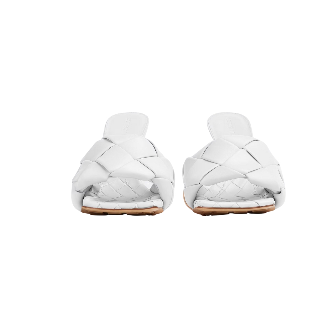 Mules Bottega Veneta intrecciate in pelle bianco ottico con tacco 9 cm