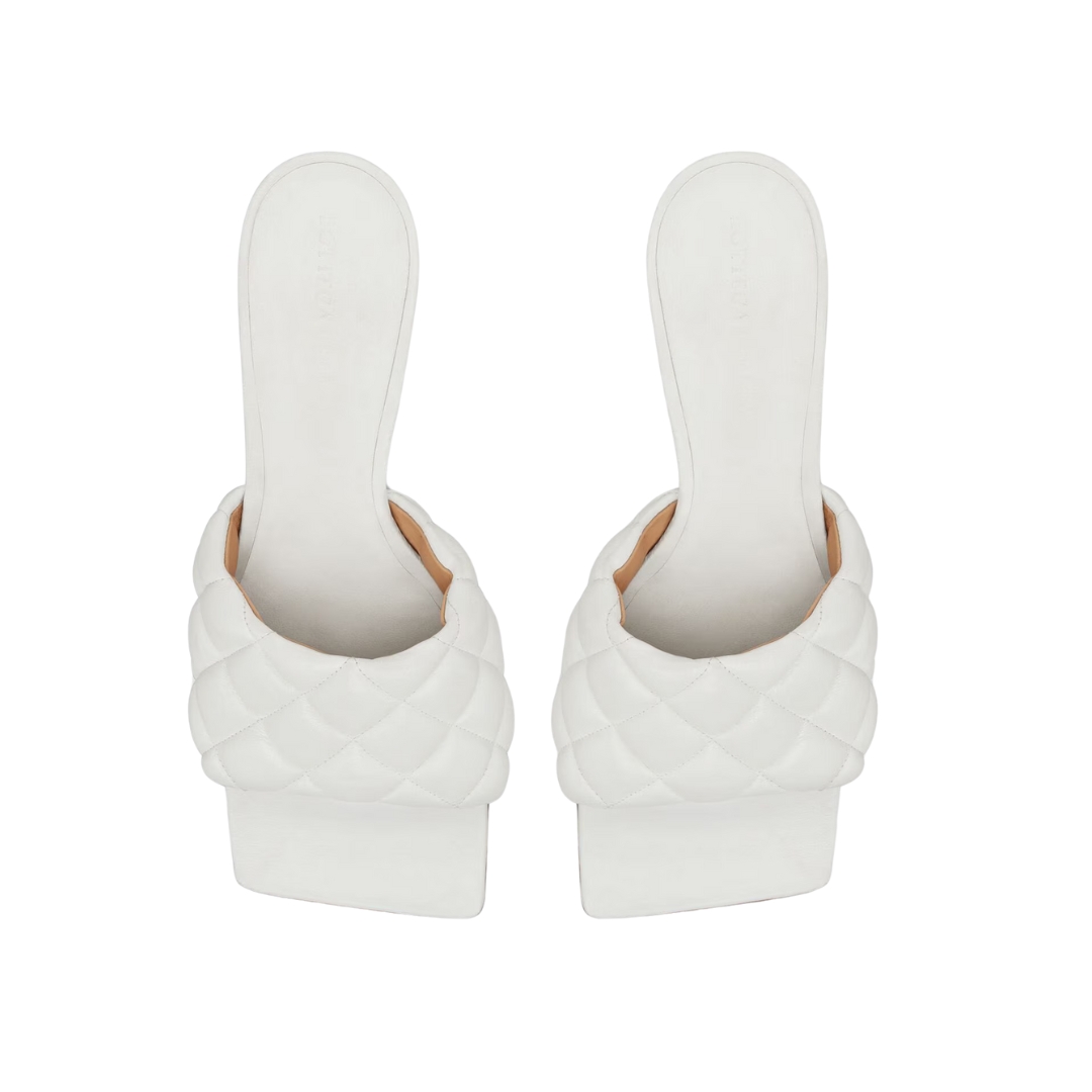 Mules Bottega Veneta imbottite in pelle bianco ottico con tacco 9 cm