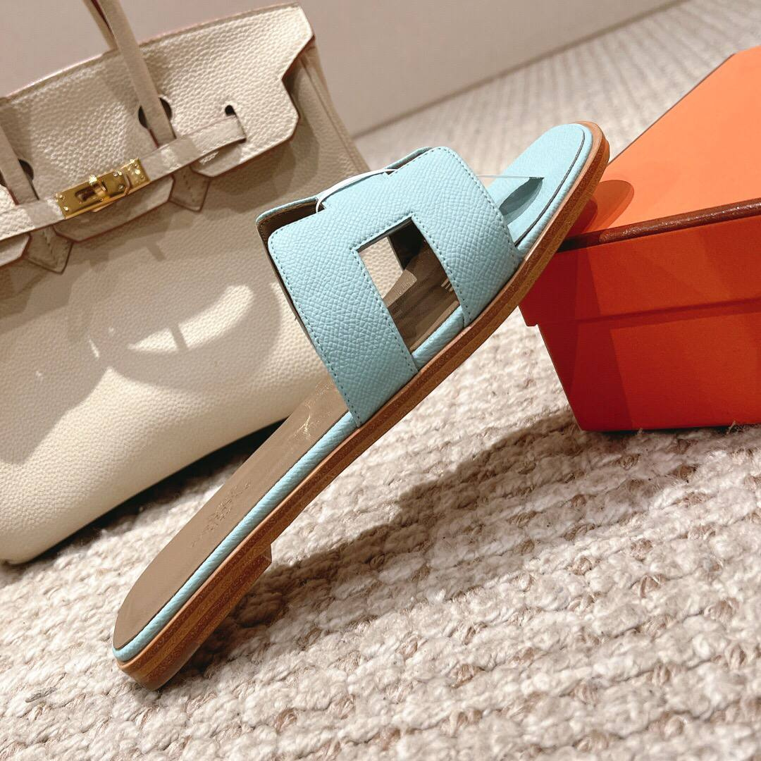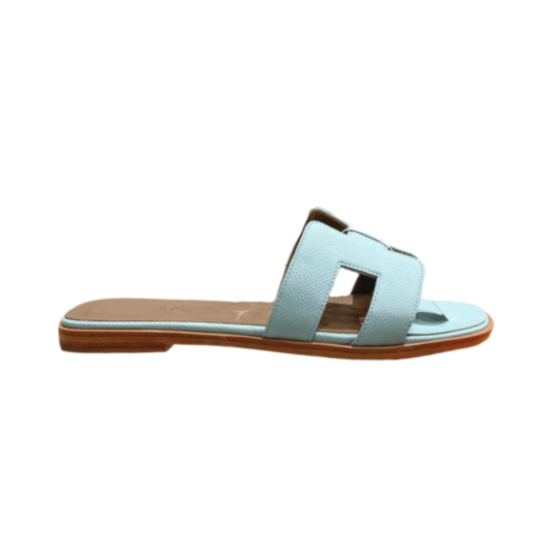 Dettagli:● Materiale: Pelle di vitello● Colore: Azzurro● Chiusura: Aperta● Logo: H traforata● Suola: In cuoio● Interno: Pelle tono su tono●
