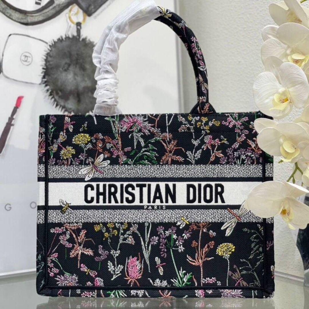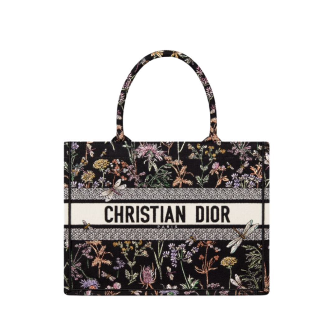 Borsa Dior Book Tote media con ricamo Dior Herbarium nero multicolore 36 cm
