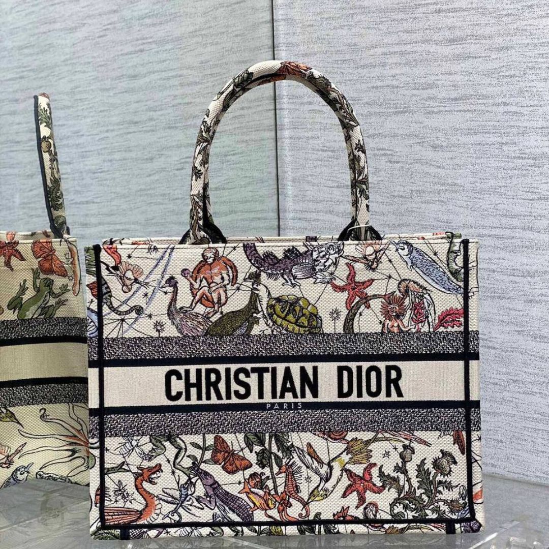 Borsa Dior Book Tote media Toile de Jouy Sauvage multicolore 36 cm