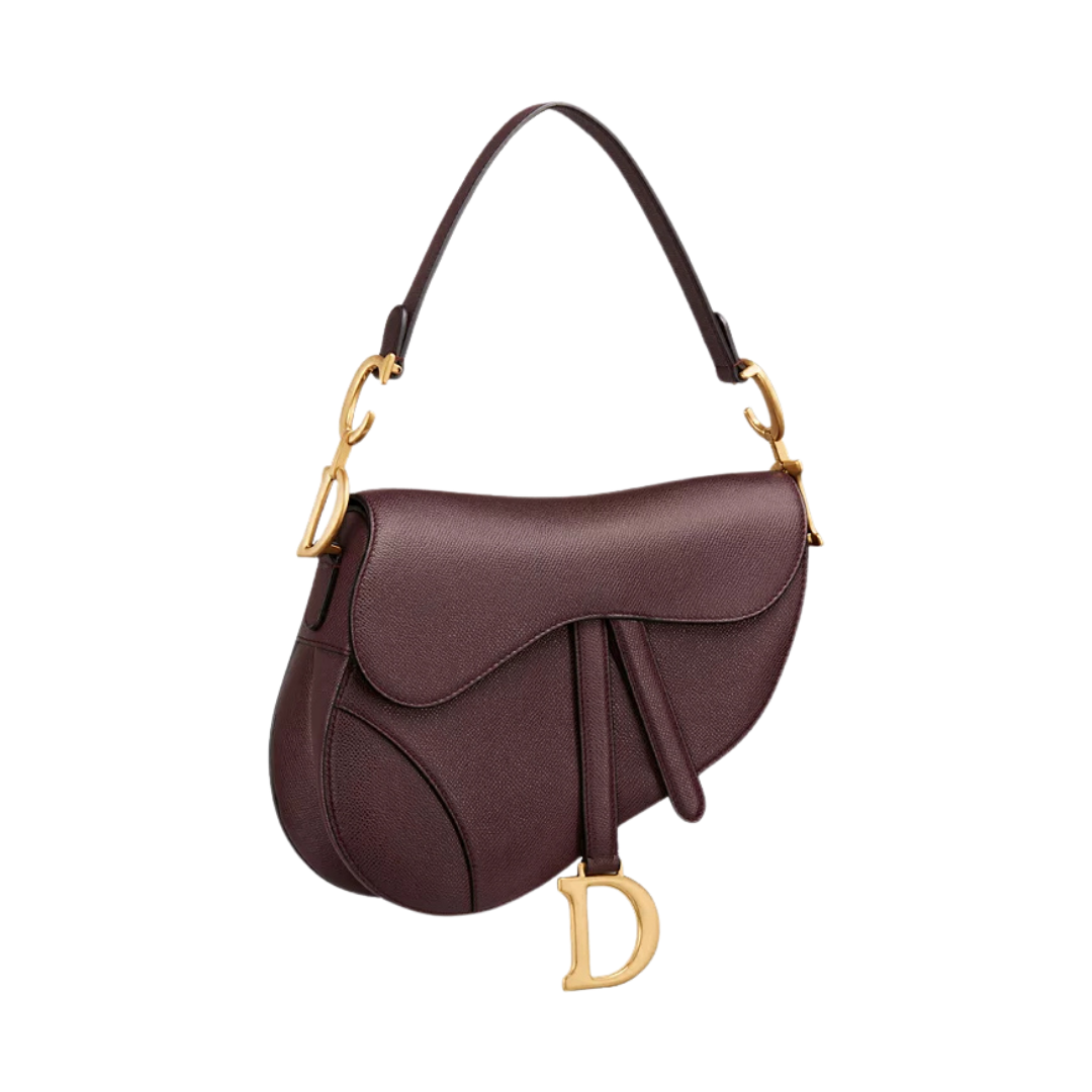 Borsa Dior Saddle bordeaux in pelle grana 25,5 cm