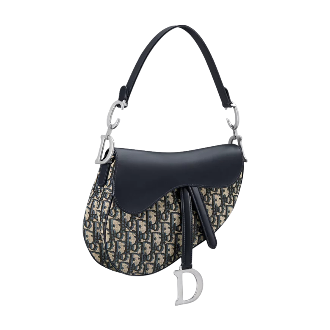 Borsa Dior Saddle Jacquard blu Oblique e pelle di vitello liscia 25,5 cm