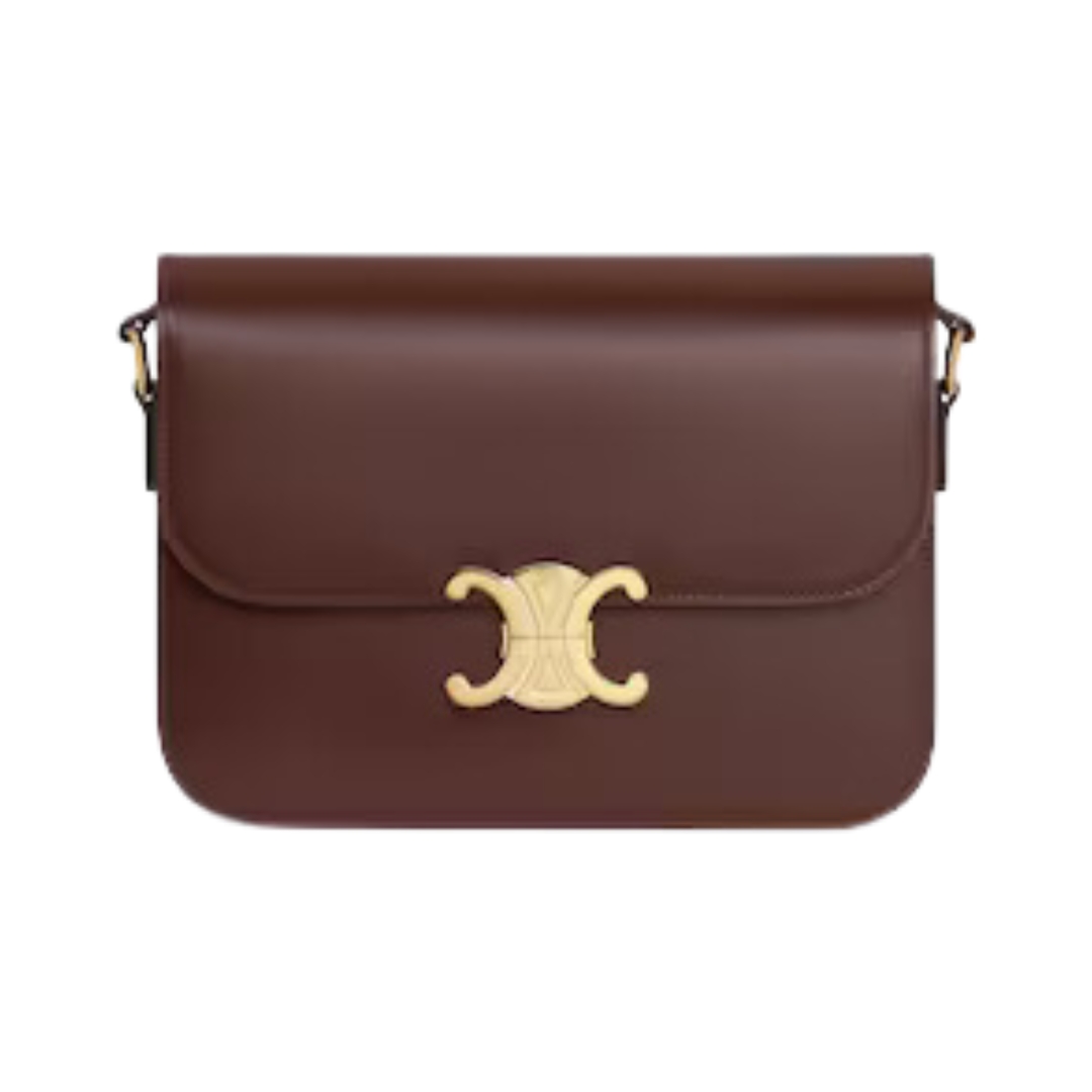 Borsa Celine Triomphe Classique in pelle lucida marrone 22 cm