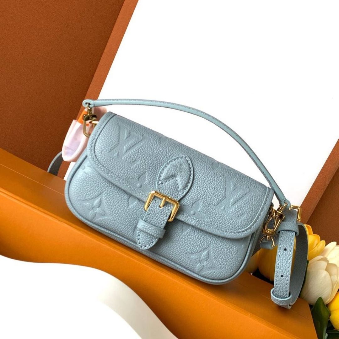 Borsa Louis Vuitton Nano Diane azzurra in pelle 19 cm