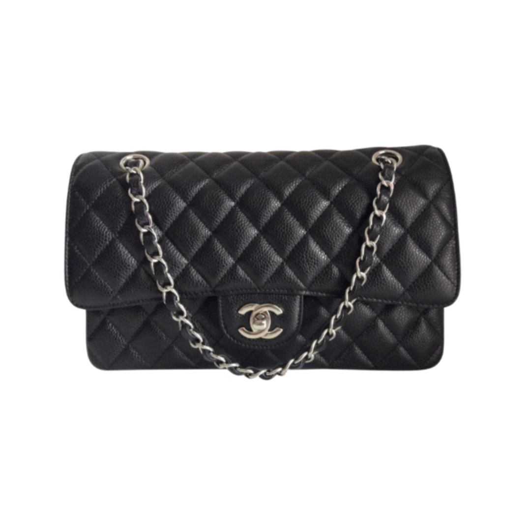 Borsa Chanel Classic Flap in pelle nera 25,5 cm