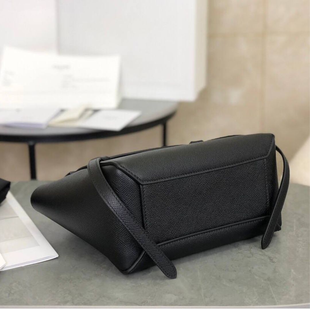 Borsa Celine Belt Mini in pelle di vitello nera 28 cm