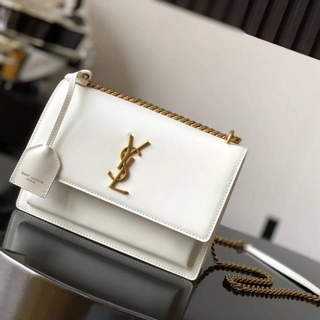 Borsa Saint Laurent Sunset Medium in pelle bianca 22 cm