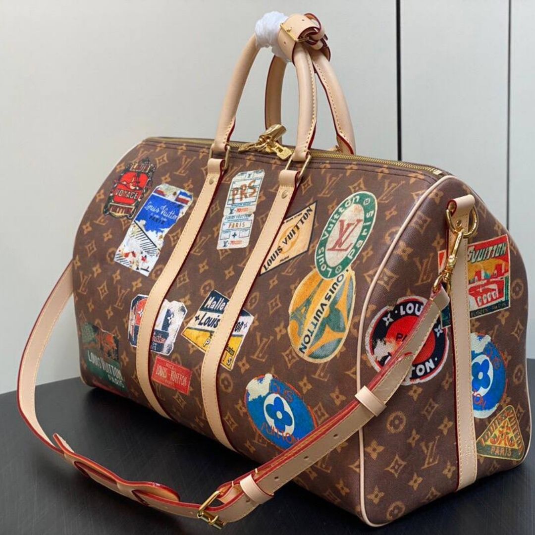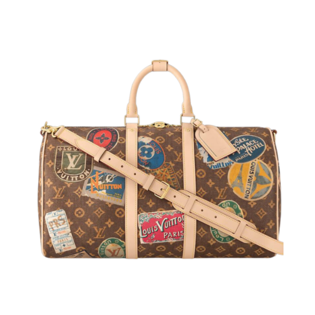 Borsa Louis Vuitton Keepall Bandoulière marrone e rosa 45 cm