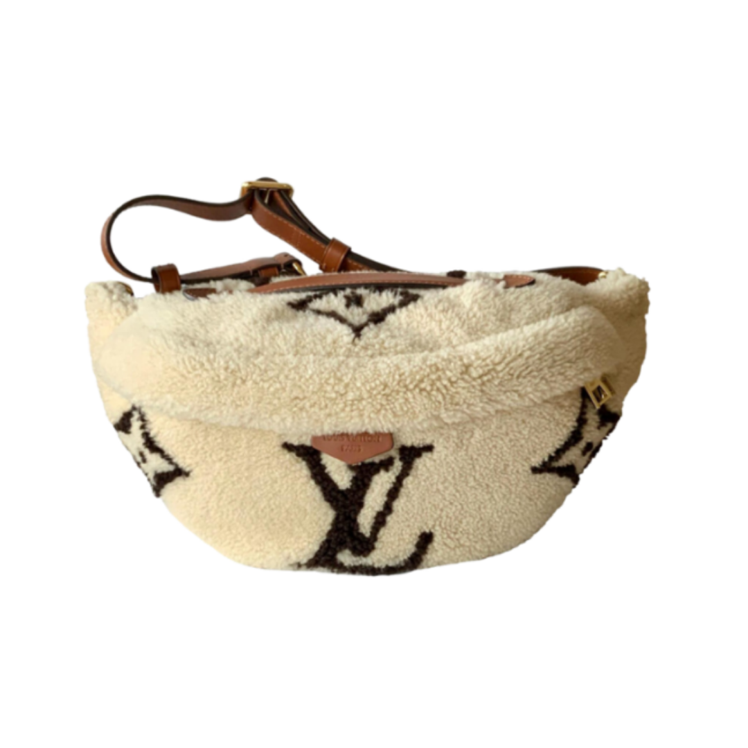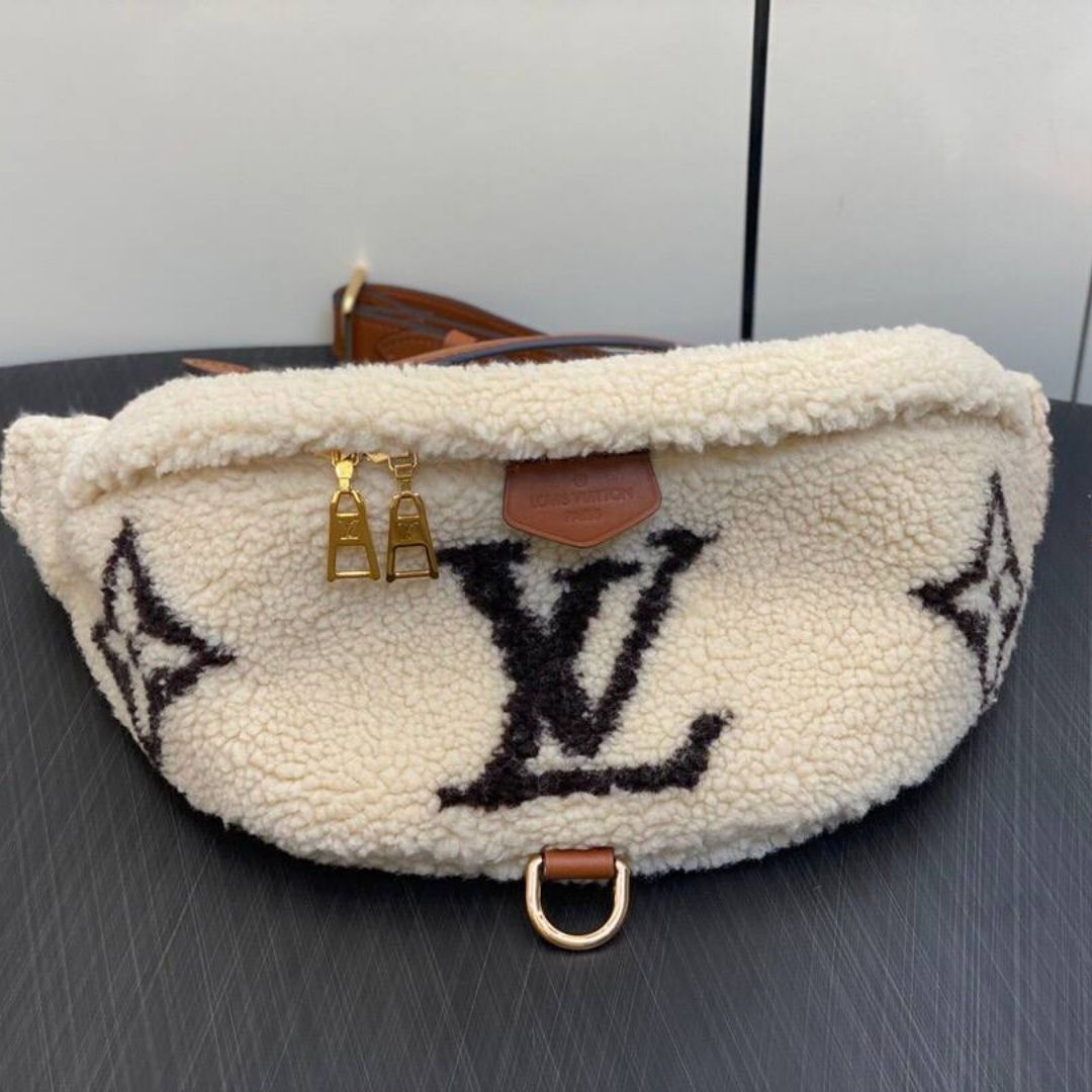 Borsa in pelliccia Louis Vuitton bianca e marrone 37 cm