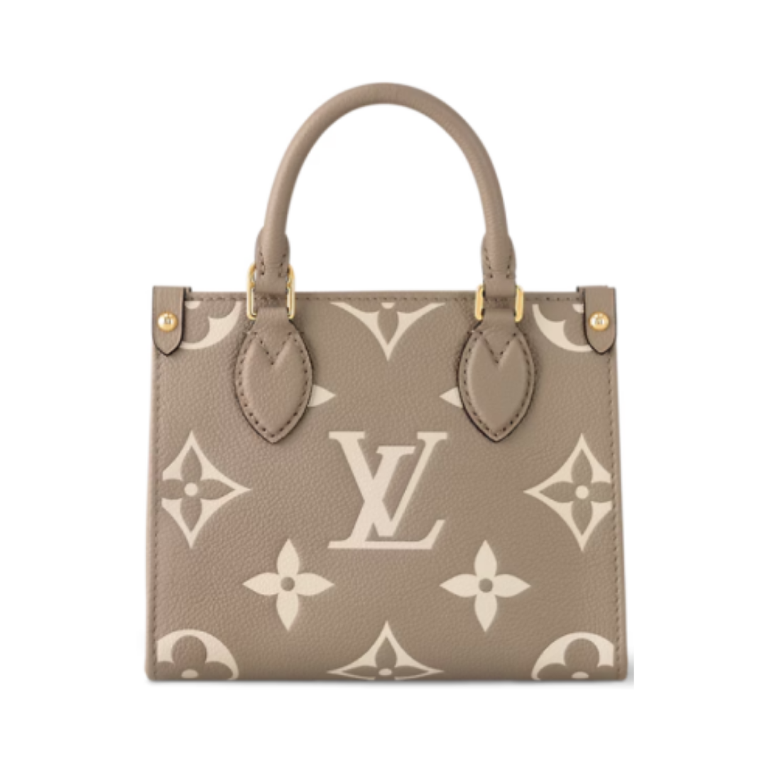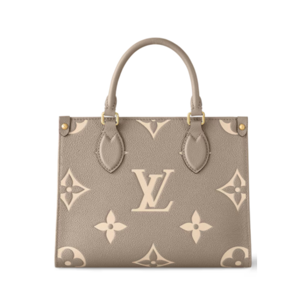 Borsa Louis Vuitton OnTheGo PM grigio tortora e crema 25 cm