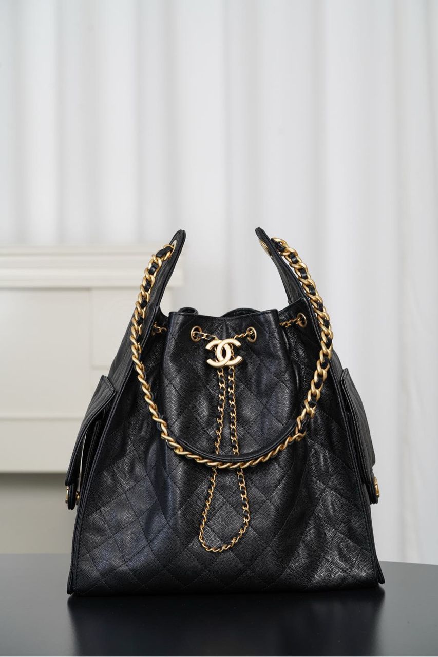 Dimensioni:● Larghezza: 42 cm● Altezza: 28 cm● Profondità: 16 cm Dettagli:● Materiale: Pelle liscia● Colore: Nero● Chiusura: Zip● Logo: Chanel