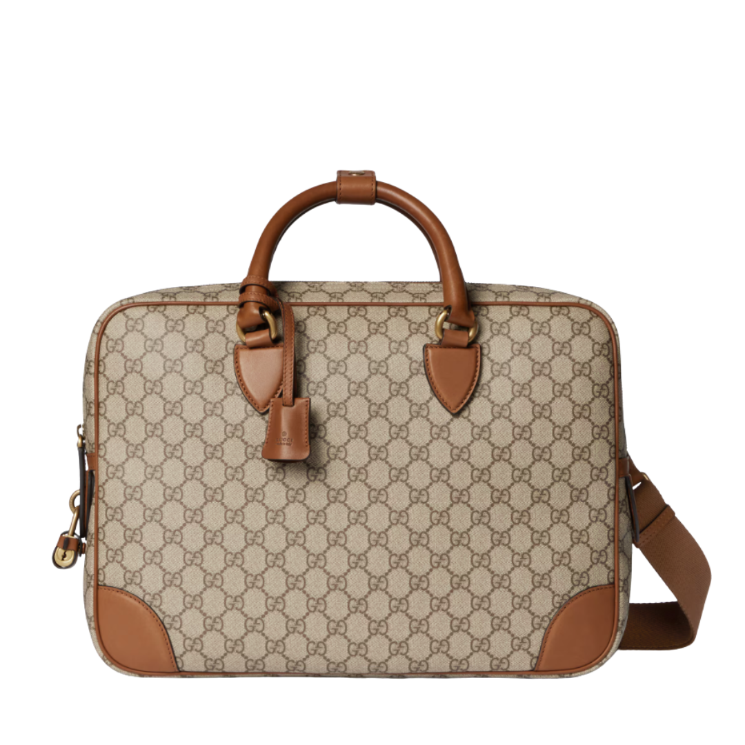 Dimensioni:● Larghezza: 40 cm● Altezza: 30 cm● Profondità: 11 cm Dettagli:● Materiale: Tela GG Supreme e pelle● Colore: Beige e
