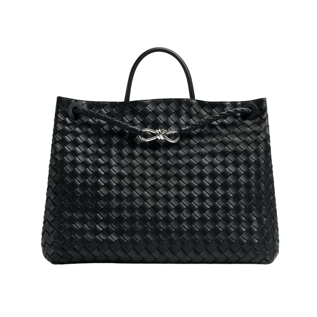 Dimensioni:● Larghezza: 35 cm● Altezza: 26 cm● Profondità: 14 cm Dettagli:● Materiale: Pelle Intrecciato liscia● Colore: Nero● Chiusura: Zip superiore