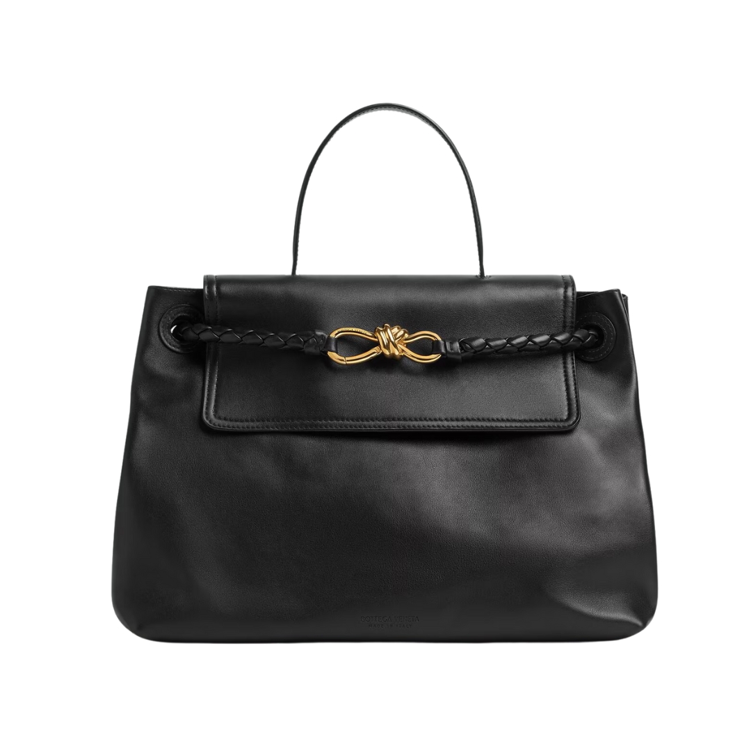 Borsa Bottega Veneta Top Handle in pelle di vitello liscia nera 33 cm