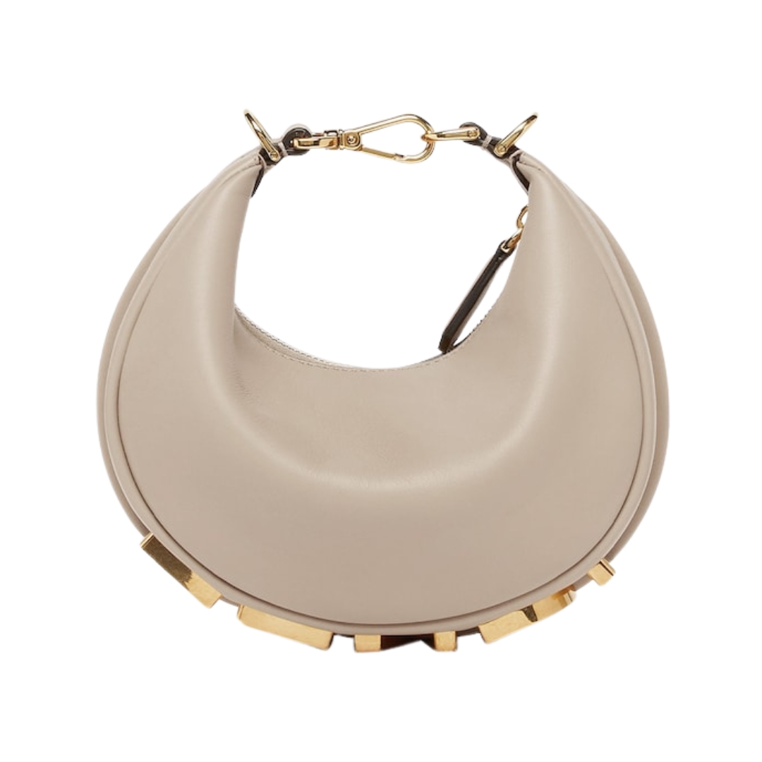 Borsa Fendi Mini Fendigraphy in pelle grigio tortora 13 cm