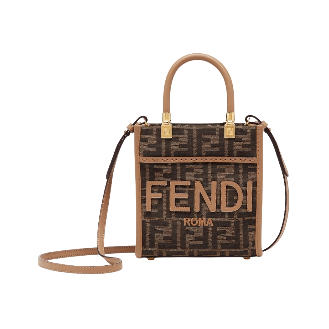 Borsa Fendi Mini Sunshine in canvas FF marrone 20 cm