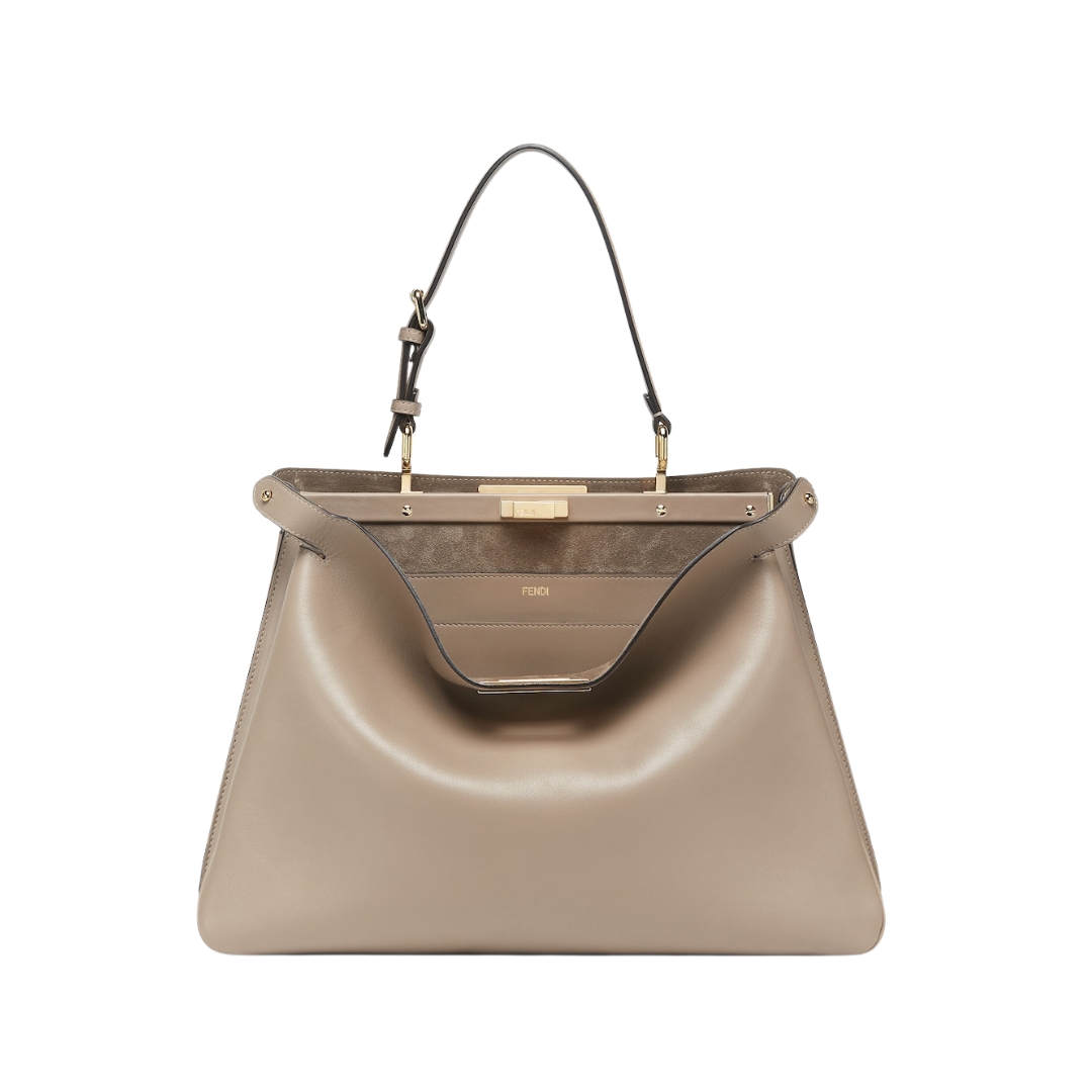 Borsa Fendi Peekaboo ISeeU in pelle taupe grigio 28 cm