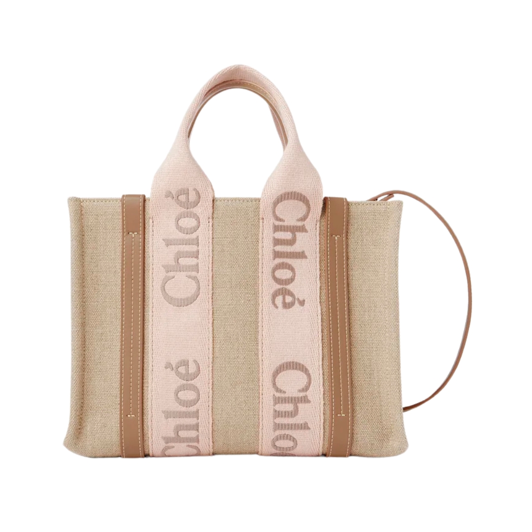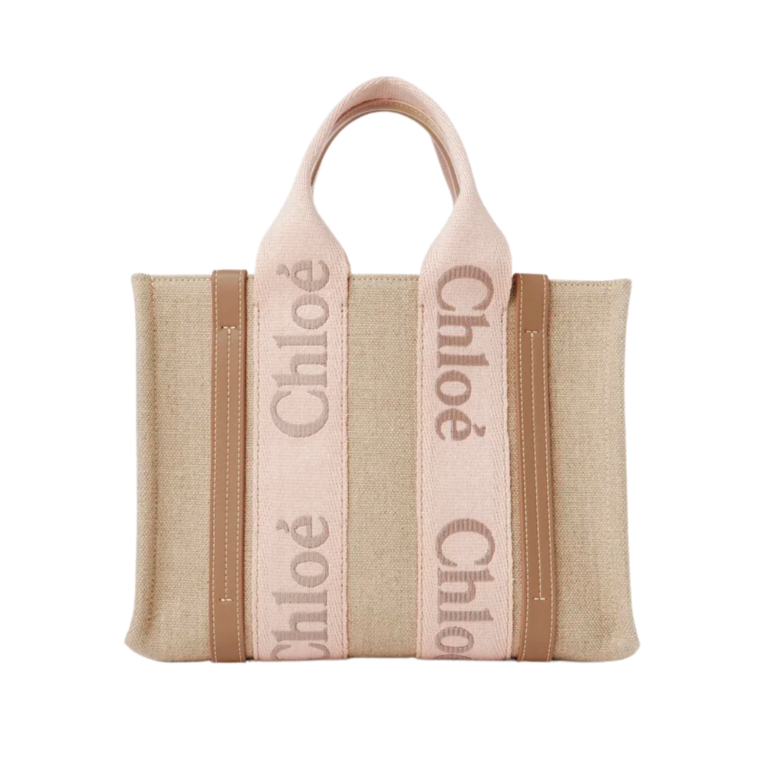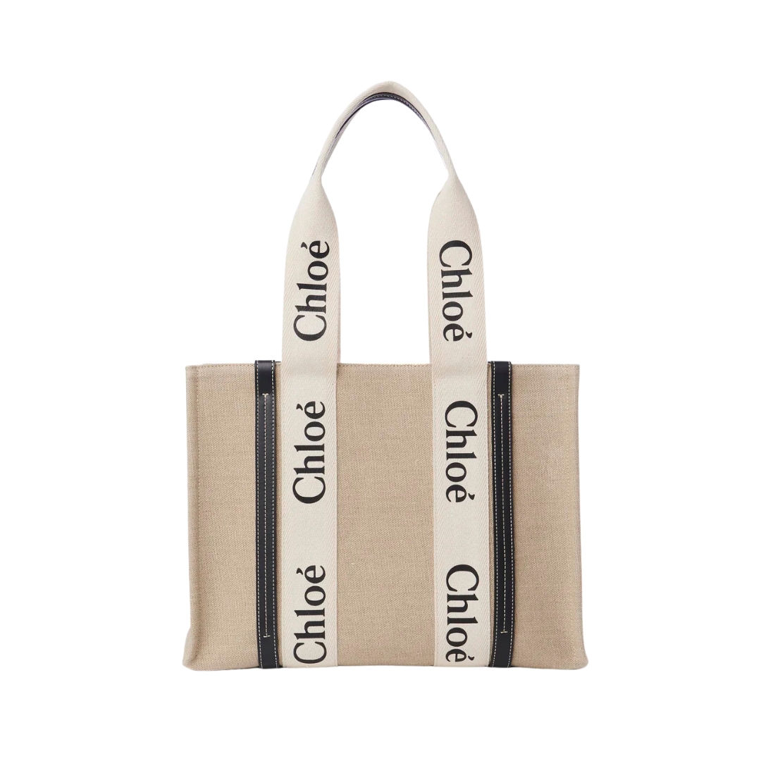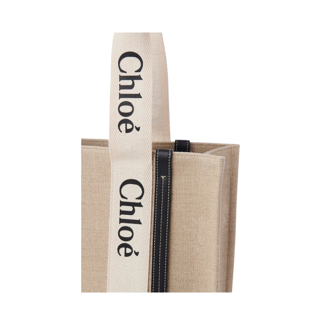 Borsa Chloé Woody in lino naturale 37 cm