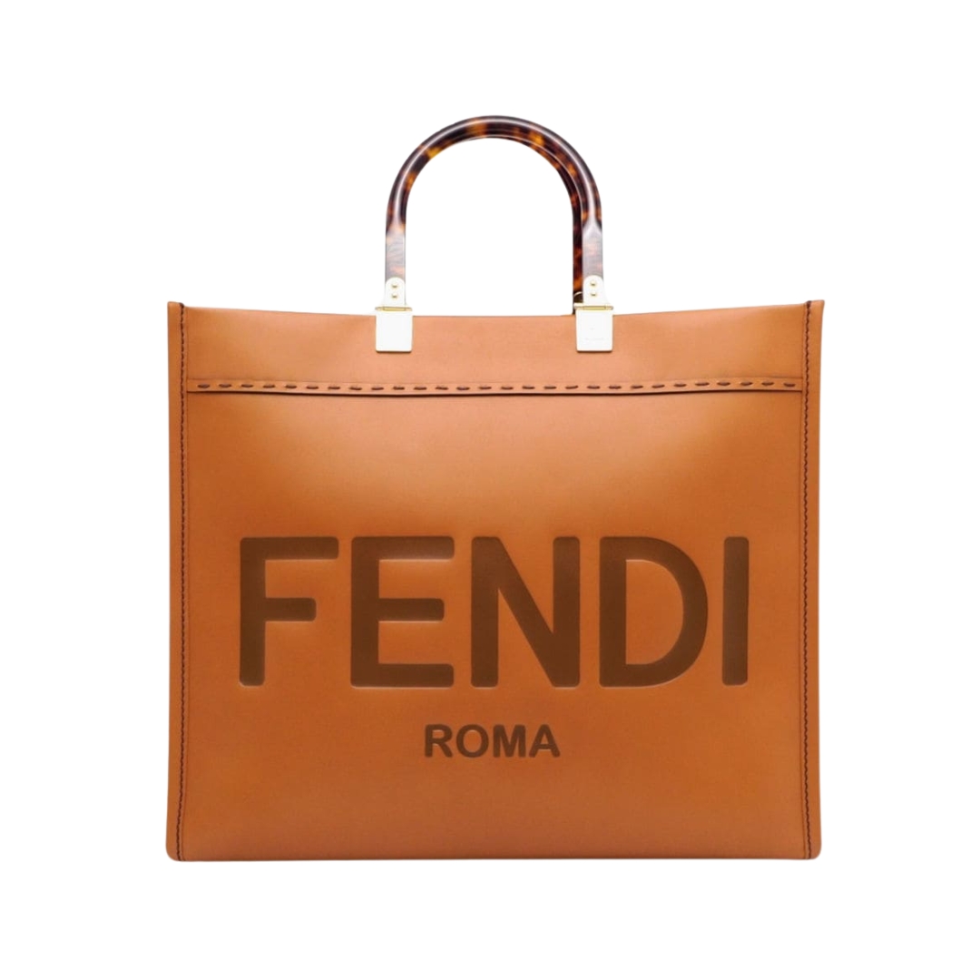 Borsa Fendi Sunshine shopper media in pelle marrone 31 cm