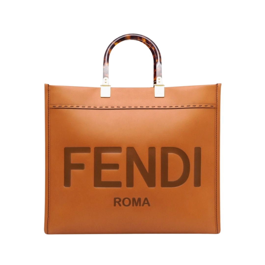Borsa Fendi Sunshine in pelle rigida color marrone 35 cm