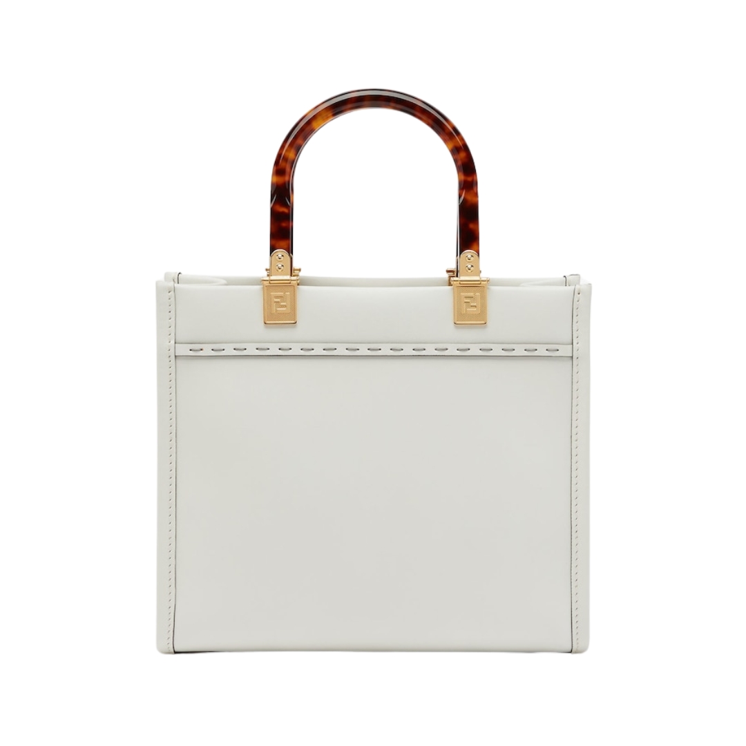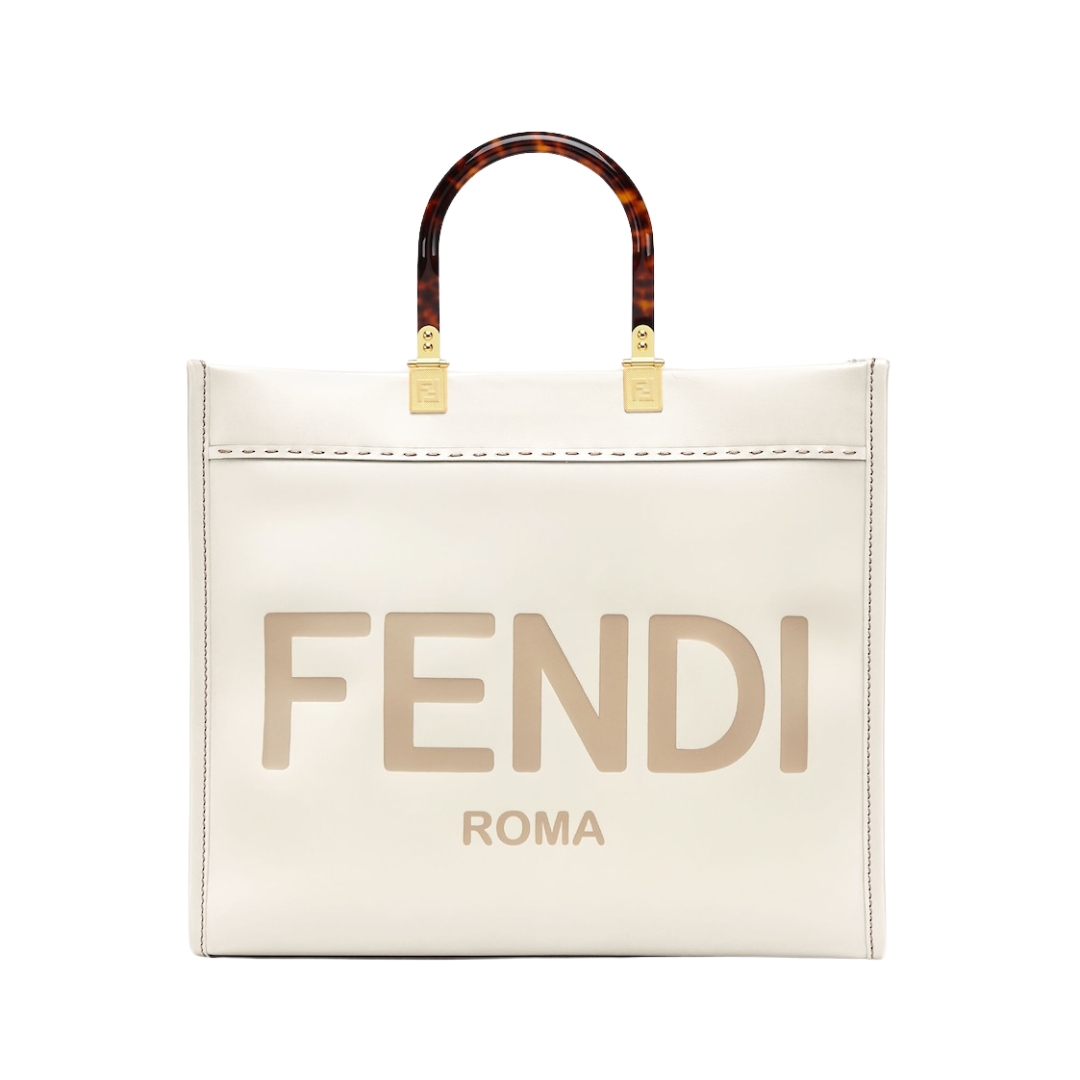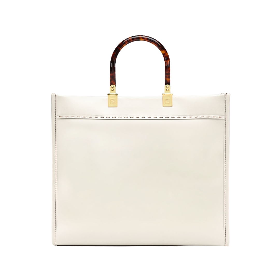 Borsa Fendi Sunshine shopper media in pelle bianca 31 cm