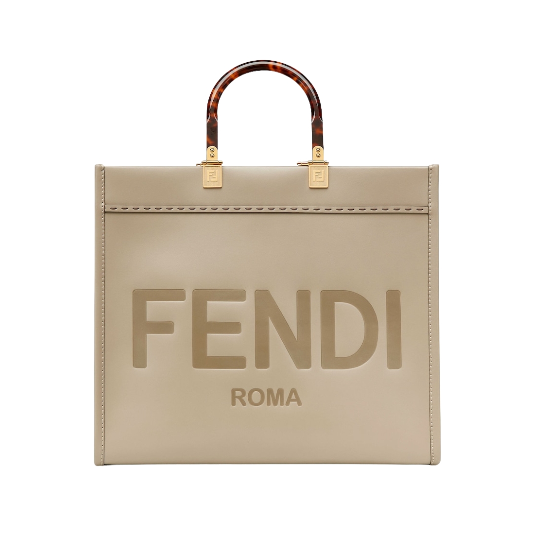 Borsa Fendi Sunshine shopper media in pelle taupe 31 cm