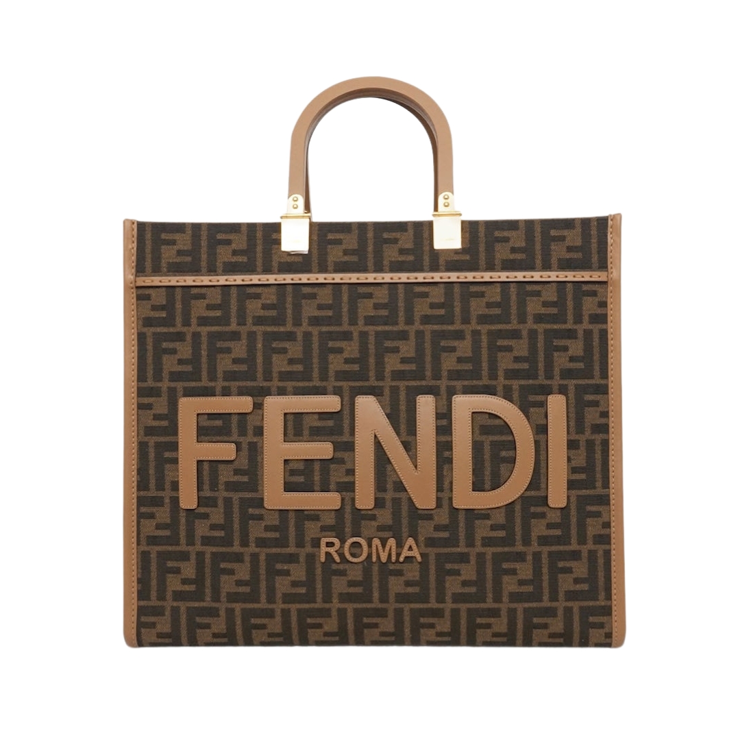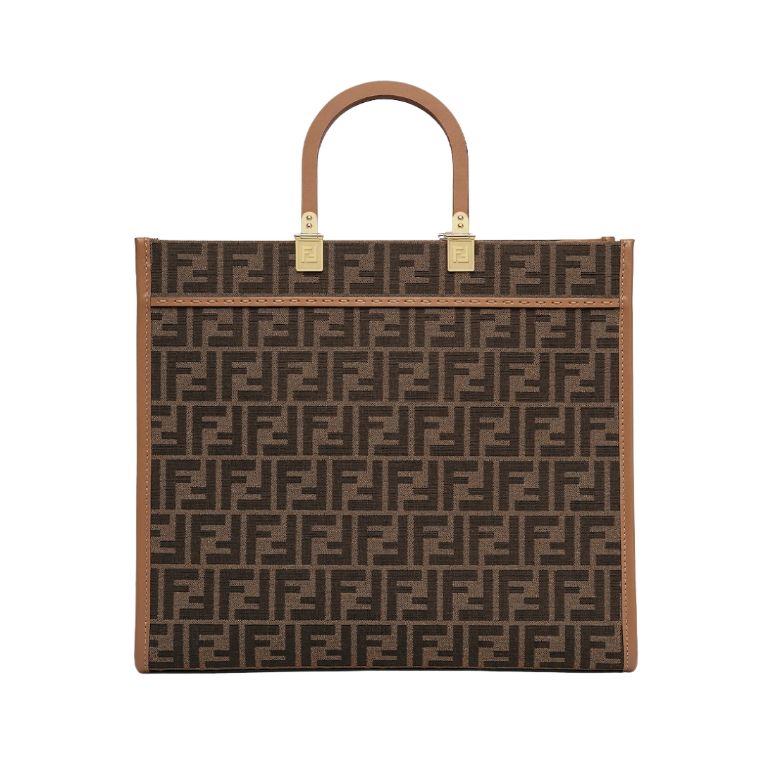 Borsa Fendi Sunshine shopper media in tessuto FF marrone 31 cm
