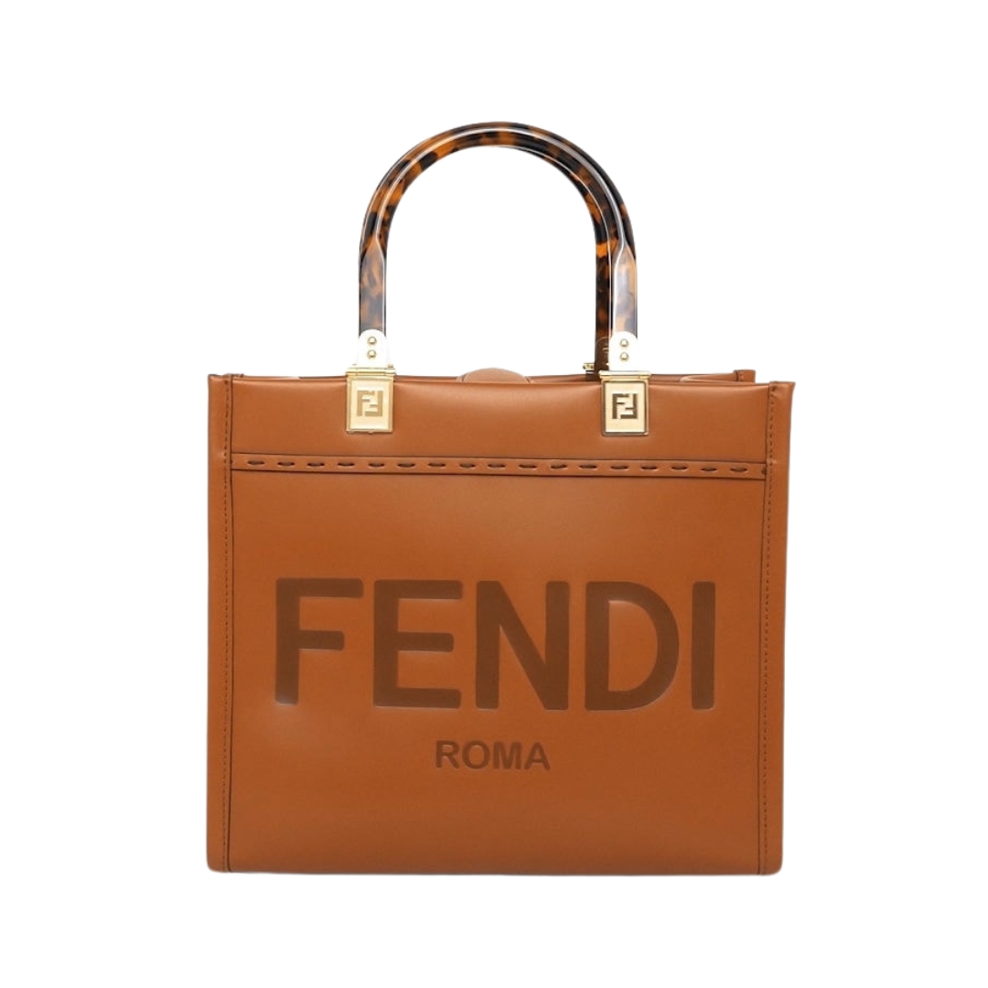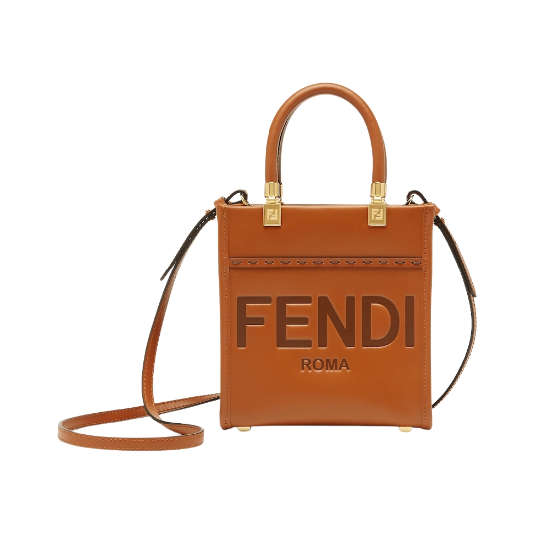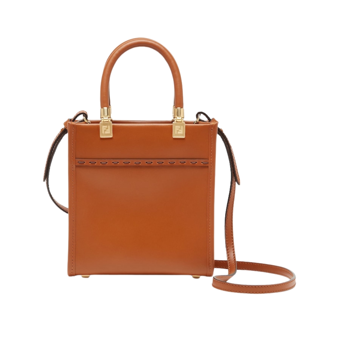 Borsa Fendi Mini Sunshine in pelle rigida color marrone 20 cm