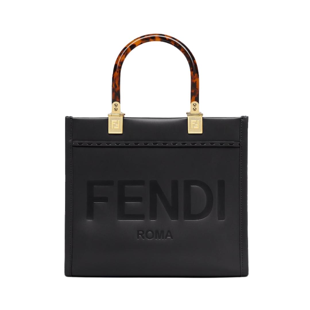 Borsa Fendi Sunshine shopper media in pelle nera 31 cm