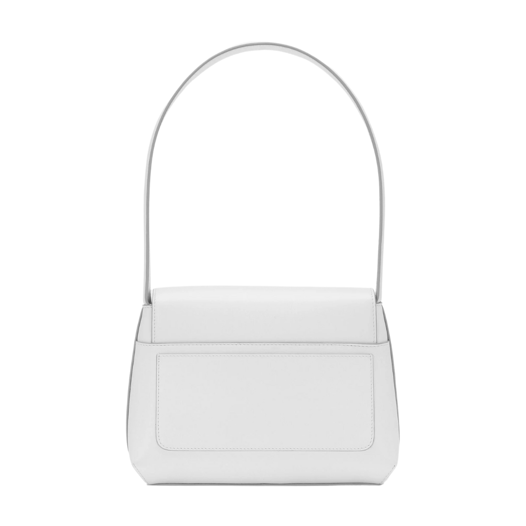 Dimensioni:● Larghezza: 24 cm● Altezza: 16 cm● Profondità: 6 cm Dettagli:● Materiale: Pelle trapuntata di vitello● Colore: Bianco panna● Chiusura:
