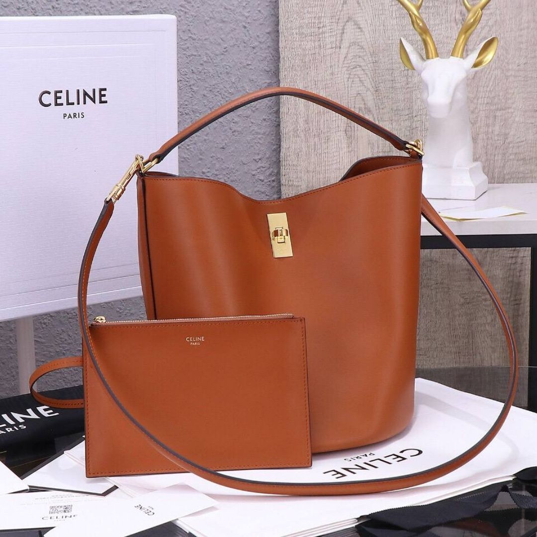 Borsa a secchiello 16 in pelle marrone 23 cm