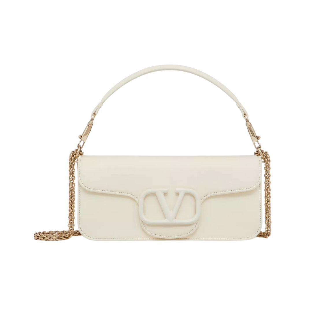 Borsa Valentino Locò in pelle avorio chiaro 27 cm