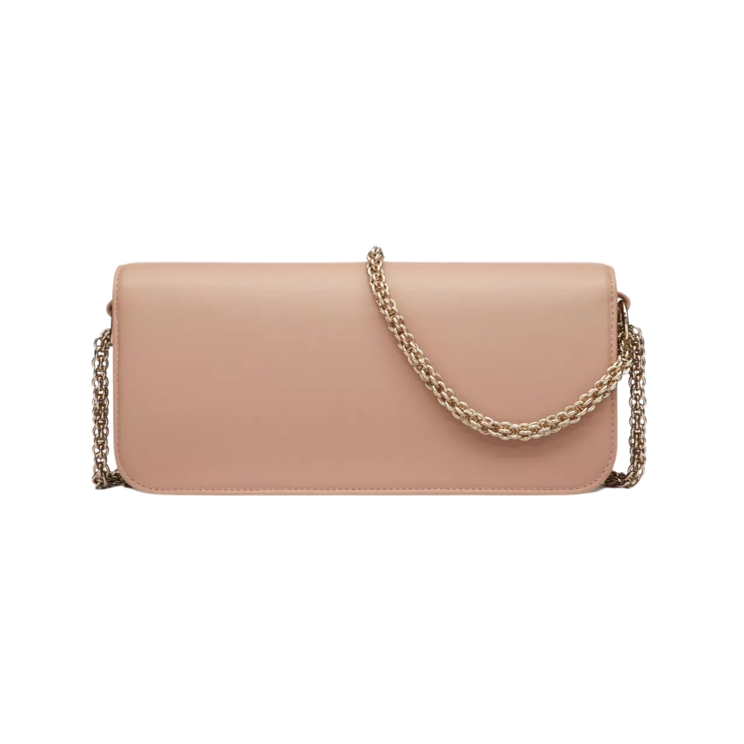 Dimensioni:● Larghezza: 19 cm● Altezza: 10.5 cm● Profondità: 4.5 cm Dettagli:● Materiale: Pelle liscia● Colore: Rosa cipria● Chiusura: Patta con