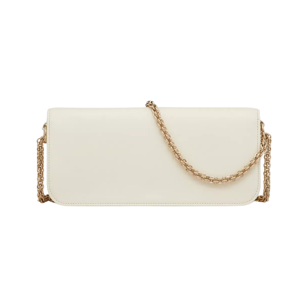 Dimensioni:● Larghezza: 27 cm● Altezza: 12.5 cm● Profondità: 5.5 cm Dettagli:● Materiale: Pelle liscia● Colore: Avorio chiaro● Chiusura: Patta magnetica●
