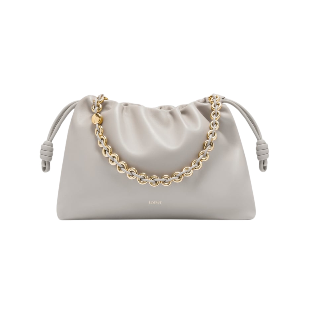 Borsa Loewe Flamenco Mini in nappa grigio perla con catena 20 cm