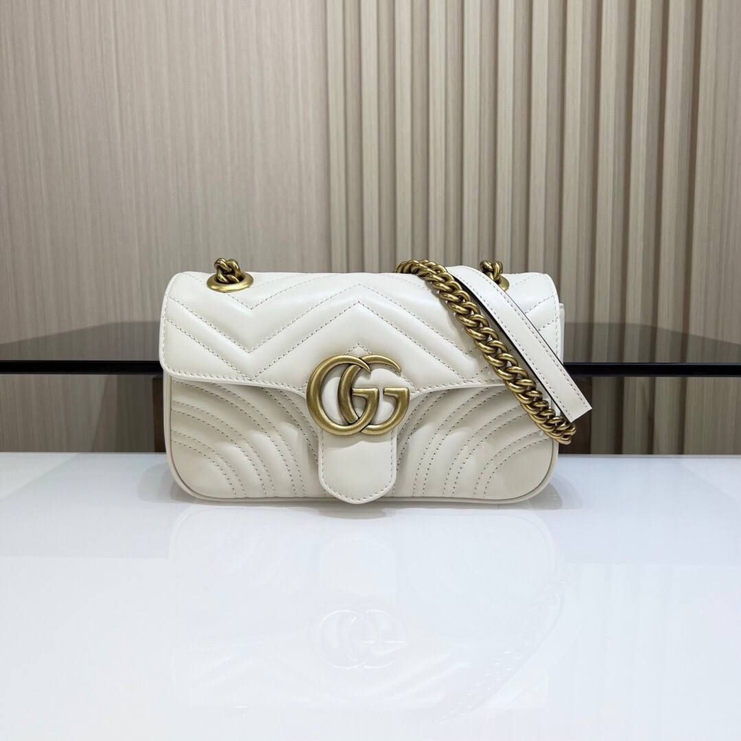 Borsa Gucci GG Marmont in pelle bianca 22 cm