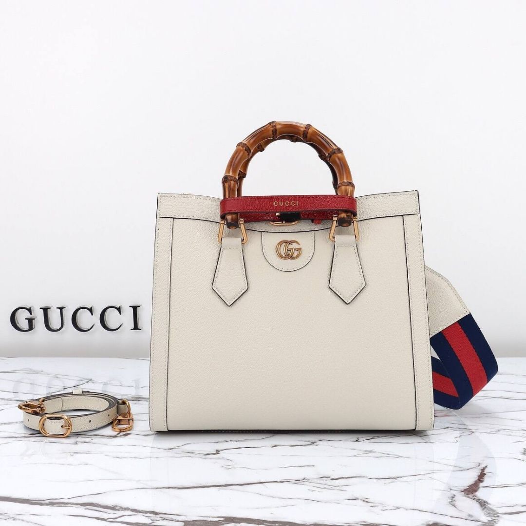 Borsa Gucci Diana Small Tote Bag in pelle bianca avorio 27 cm