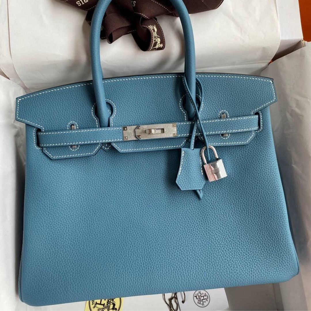 Borsa Hermès Birkin 30 in pelle Swift celeste