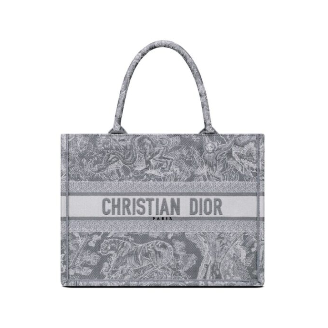 Borsa Dior Book Tote media ricamo Toile De Jouy grigio 36 cm