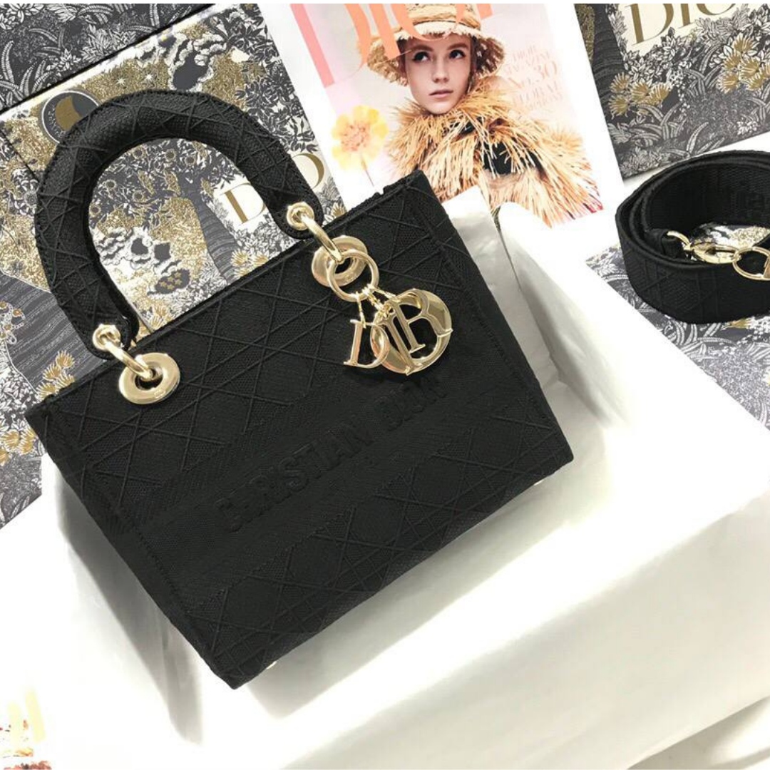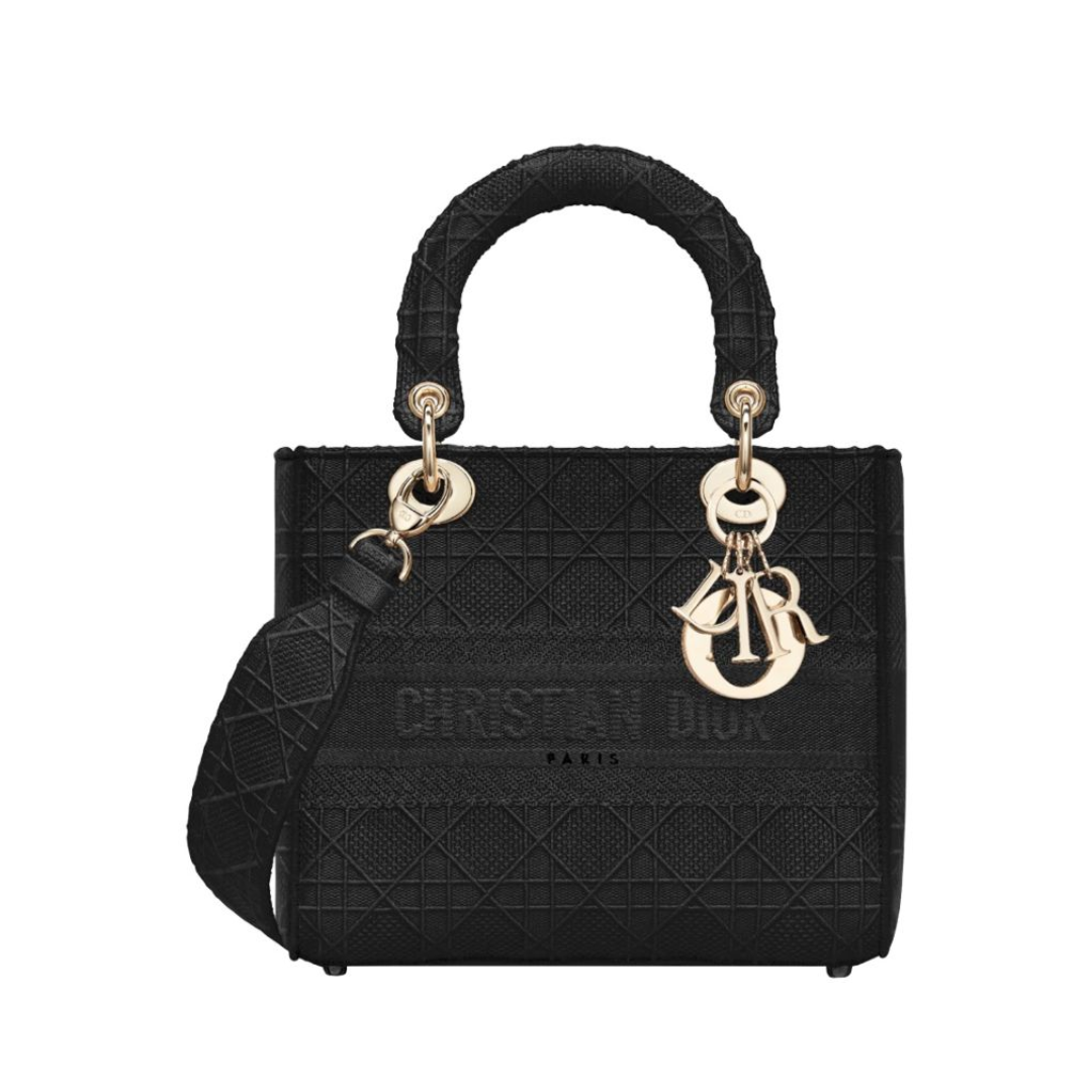 Borsa Dior Lady D-Lite in ricamo nero 24 cm