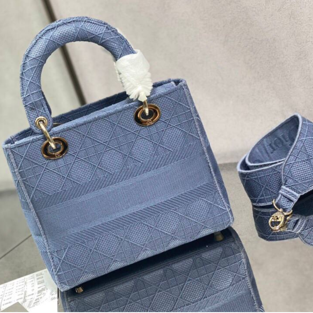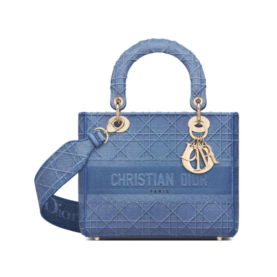 Borsa Dior Lady D-Lite in ricamo blu 24 cm