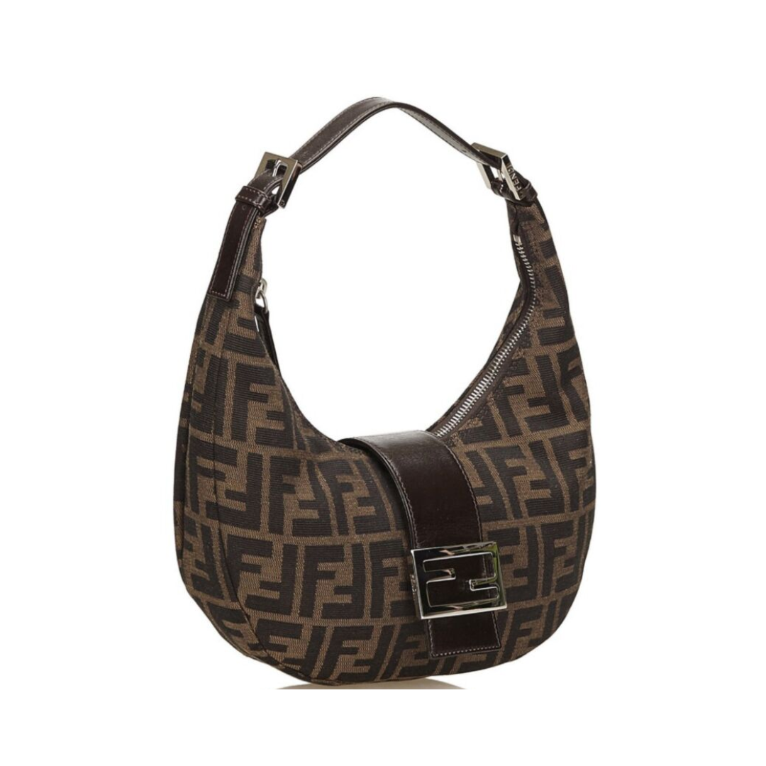 Dimensioni:● Larghezza: 26 cm● Altezza: 22 cm● Profondità: 10 cm Dettagli:● Materiale: Tessuto FF jacquard e pelle● Colore: Caffè● Chiusura: