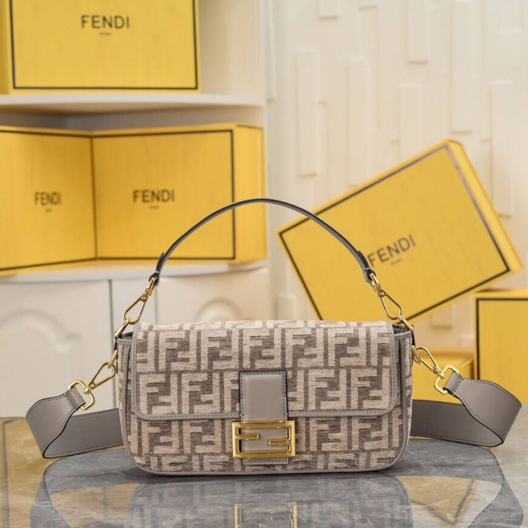 Borsa Fendi Baguette in tessuto beige e marrone 27 cm
